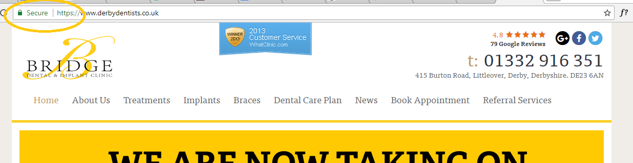 The New GDPR legislation makes it mandatory for companies to ensure that website visitors are protected from hacking and data leaks. One way that this can be achieved is to ensure that the website is protected by what is known as SSL encryption, which means that any data shared between you and the website or vice versa cannot be intercepted. Here at Bridge Dental & Implant Clinic, we’ve been secured by SSL for a long time, however we feel that it is important to make sure our visitors know that they are safe.