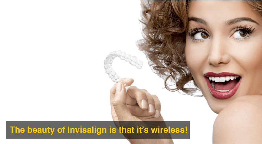 The beauty of Invisalign is that, like many things these days, it’s wireless! Invisalign uses a series of clear, plastic, removable aligners that gently and gradually move your teeth into the straight smile that you’ve always dreamed of.