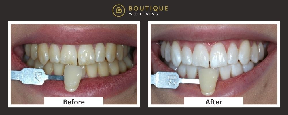 At Bridge Dental, we are always in pursuit of the best for our patients. That’s why we’ve chosen Boutique, renowned for its effectiveness and convenience. Just take a look at this before and after of the Boutique teeth whitening:
